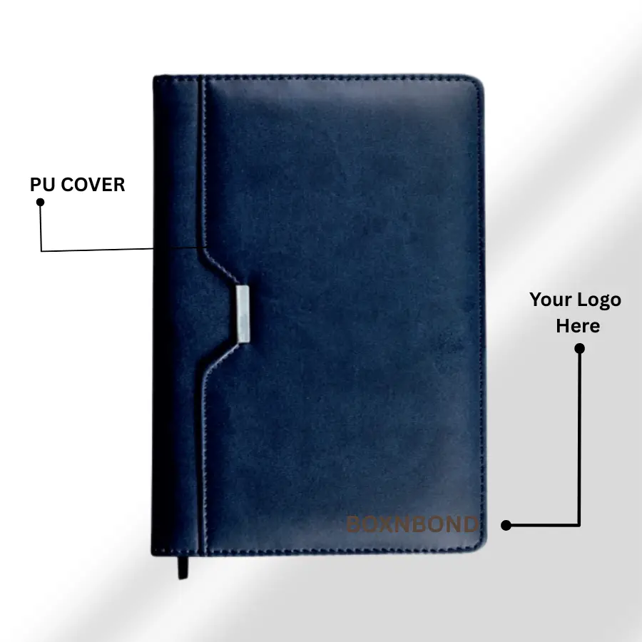 • A5 size (5.75″ x 8.25″) diary in deep navy blue with elegant PU cover