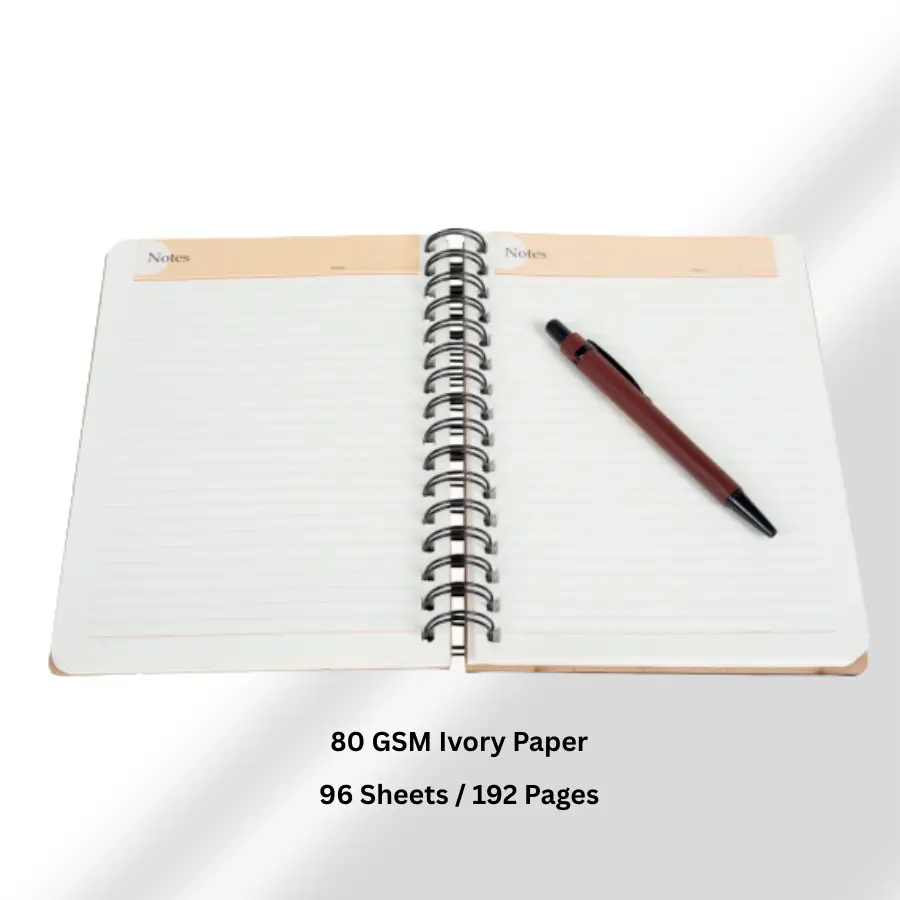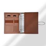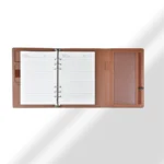 It features a refillable spiral diary with 80gsm, 96 sheets, ensuring smooth writing and long-term usability. The diary also includes an elastic band closure, name card holder, slide pockets, and pen holder (pen not included), making it highly functional. An extra zipper wallet inside adds to its practicality, allowing you to store important documents or small essentials securely.