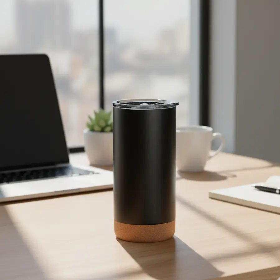 Elevate your drinkware collection with the Instacork Mug – a premium 550 ml stainless steel cup featuring a protective cork case and secure lid. Perfect for gifting with distinction.
