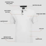 Personalized white color polo t shirt – a timeless classic that brings crisp, clean professionalism to any team. Whether you’re outfitting staff for a company event, trade show, or everyday office wear, this white polo delivers a polished look with exceptional comfort.