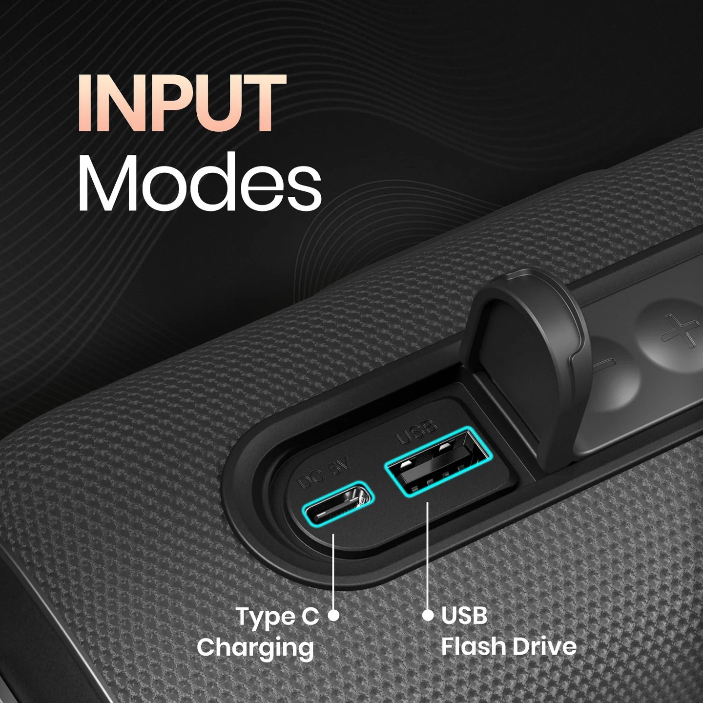Experience superior sound with the Portronics Resonate 14W Portable Speaker. Enjoy clear 14W audio output, vibrant LED sunset lights, and up to 5 hours of playback time. Connect seamlessly via Bluetooth 5.3 with TWS support, and carry your music anywhere with its leather handle design.