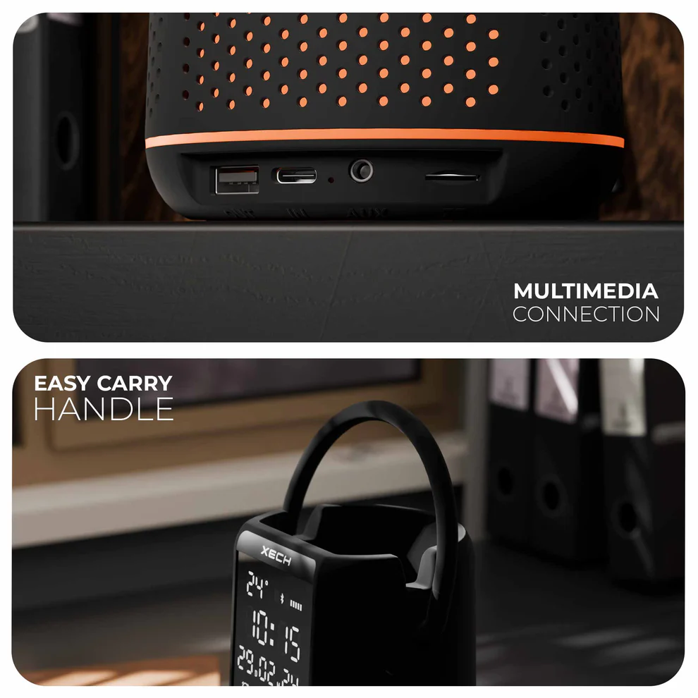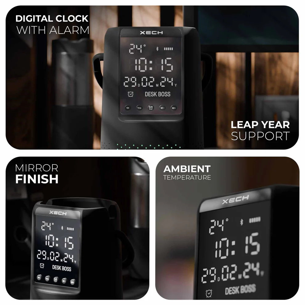 Introducing the Xech Deskboss Dark Edition Digital Clock With Speaker—a premium multifunctional gadget designed for professionals who value style, utility, and performance. Encased in a luxurious dark rubber finish, this hybrid desk essential seamlessly combines a mirror-display digital clock with alarm, calendar, and temperature sensor. Its smart auto-sync function ensures your clock always displays the correct time and date without manual adjustment.