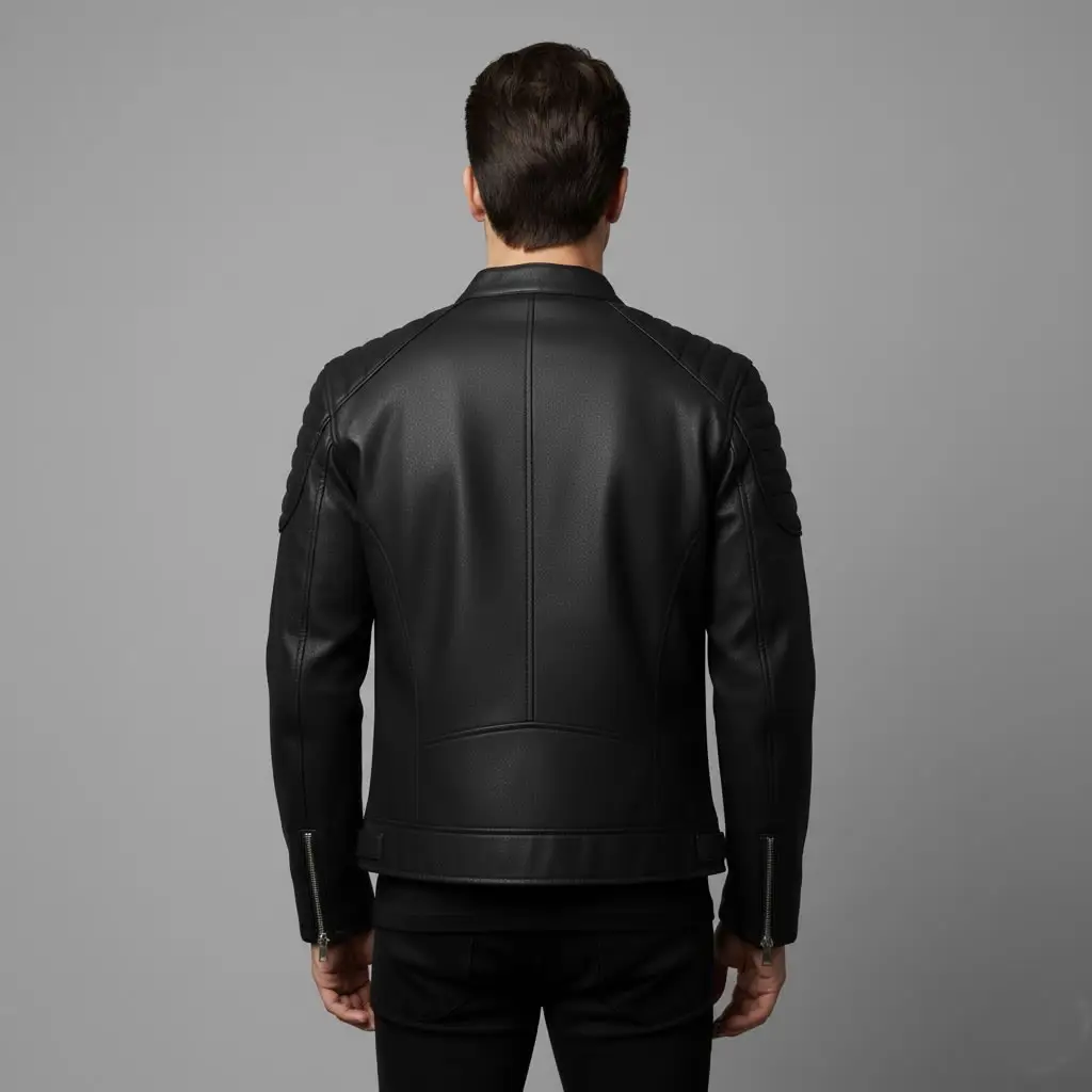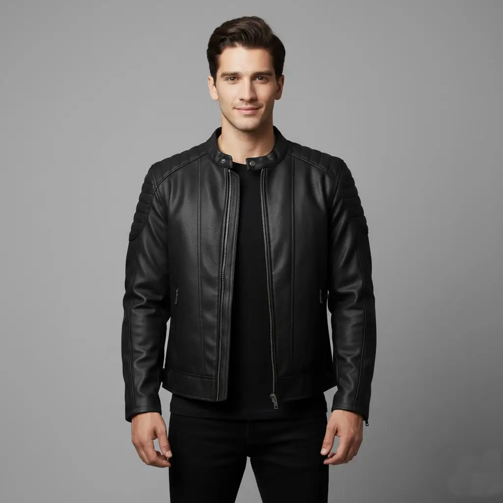 Best Biker Jacket for Men featuring premium micro polyester construction with 450 GSM anti-piling fabric. Includes exclusive shoulder padding, high neck collar with button closure on sleeves. Temperature controlled, sweat absorbent, and perfect for biking and casual wear.