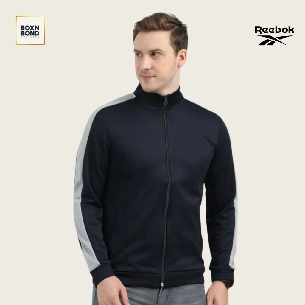 Stay warm and stylish with the Reebok Navy Polyester Winter Jacket, crafted from 100% polyester for durable, lightweight warmth.